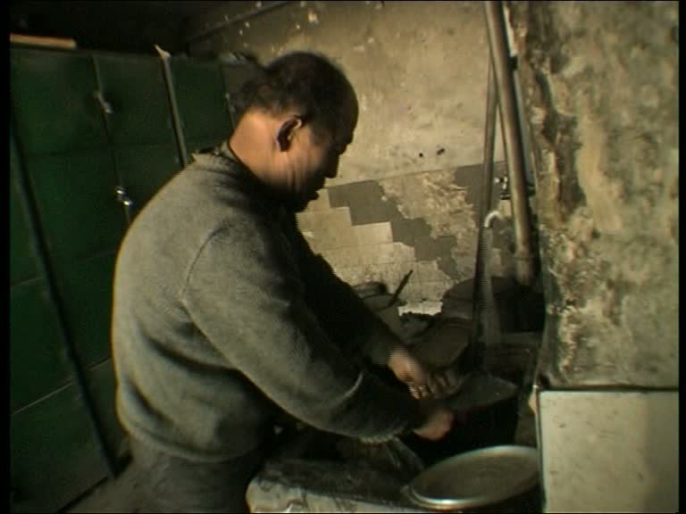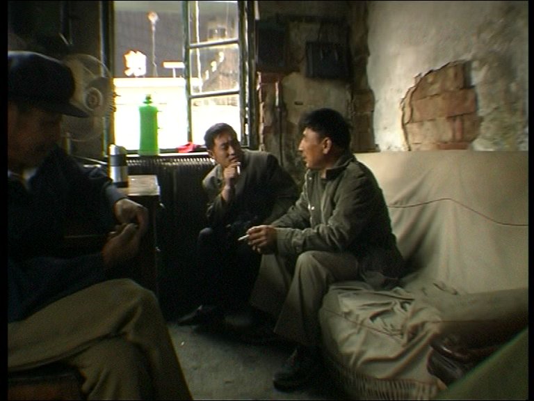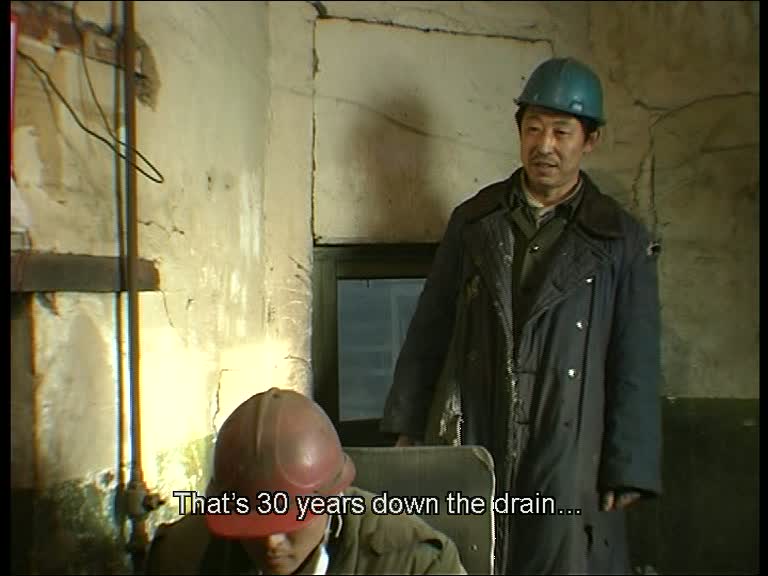 La première partie est probablement la plus éprouvante, la plus longue, la plus lente, la plus sombre, celle qui illustre avec la plus grande éloquence cette sensation de fin de monde.Des hangars aussi poussiéreux que monumentaux, déjà à moitié abandonnés, au sein desquels un reliquat d'ouvriers essaie de réparer de gigantesques machines centenaires. On n'en sortira qu'à la toute fin, lorsque Wang s'invitera dans l'hôpital traitant les anciens employés intoxiqués aux fumées de plomb, partagés entre les traitements, l'ennui, le visionnage de film porno sur une vieille télé, et les discussions autour d'un ouvrier tout juste retrouvé noyé dans l'étang voisin — suicide maquillé en mort accidentelle, résultat d'une soirée trop alcoolisée, on ne saura pas trop. En dehors de cette conclusion, la caméra alterne entre témoignages directs, aperçus des travaux réalisés, et pauses dans les salles de repos. On joue aux cartes ou au mahjong, on se tape dessus ou on se douche dans d'anciens bassins reconvertis en bains collectifs. Mais on est constamment plongé dans une ambiance cauchemardesque, avec cette lumière blafarde, cette exiguïté absolue condensant les corps autour des tables au centre de salles minuscules. Le désarroi des ouvriers est au moins aussi percutant que leur lucidité vis-à-vis de leur sort, avec la décrépitude allant crescendo : dettes de l'usine, équipements non-conformes, accidents, salaires impayés, pénurie de matière première, spectre du chômage.