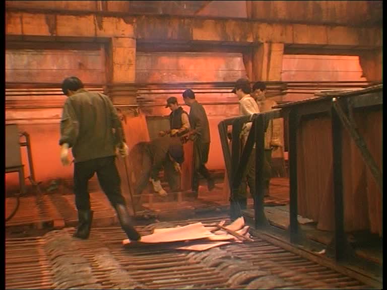 Wang montre une facette de la condition ouvrière comme on l'a rarement vue ailleurs. Dans ces lieux désaffectés, quelques ouvriers continuent de travailler, comme livrés à eux-mêmes, des présences presque fantomatiques au sein d'un purgatoire de rouille et d'obscurité. Le glissement progressif de l'invraisemblable vers le tragique au sein de cette partie est tétanisant de grisaille et de noirceur.