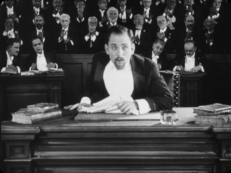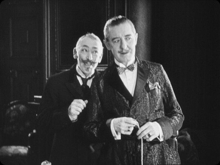 Il n'y a vraiment que le cinéma muet pour supporter le poids d'une telle tragédie et d'un tel mélodrame sans plier sous les émotions aussi fortement figurées — pour peu qu'on soit un minimum familier avec le registre, évidemment. Probablement que l'appréciation du jeu de comédien de Chaney aidera grandement : à titre personnel, j'aime toujours autant ses personnages, partagés entre des élans humanistes ou sensibles déchirants et des accès de furie franchement insoupçonnés. Le concentré d'amertume que son personnage Paul Beaumont accumule au fil de l'intrigue atteint un paroxysme fou, balayé par les bassesses de ses proches, et rejoué chaque soir sous le chapiteau d'un cirque dans lequel il incarne un clown recevant une quantité incalculable de baffes de la part de ses confrères et devant une foule hilare, reflet des grands scientifiques qui avaient tant ri de lui dans sa vie passée (la métaphore est appuyée par des surimpressions récurrentes). Fatalement, lorsque le même schéma d'humiliation se profile à l'horizon concernant une écuyère de la troupe, manigancé d'une part par son père et d'autre part par le baron / ancien ami-traître du héros, son sang ne fit qu'un tour, son champ de vision peint en rouge sang.