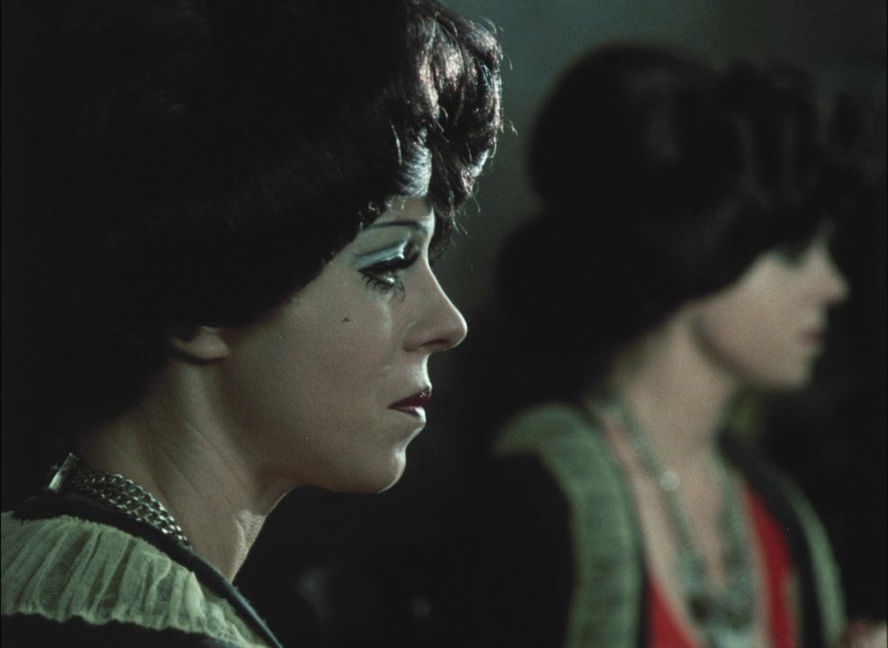 Il y a un renversement assez incroyable dans les partis pris esthétiques entre L'Incinérateur de cadavres et Morgiana, alors que seulement trois années séparent deux des films tchécoslovaques réalisés par Juraj Herz les plus connus, autour de 1970. Au noir et blanc déprimant et lugubre du premier répond un univers étonnamment coloré du second (sans que cela ne signifie pour autant que le récit illustrera un moment de gaieté absolu), avec sa direction artistique particulièrement soignée en termes de costumes, de maquillages, de décors, ou de cadrages. Un écrin vraiment très favorable à une appréciation plus spontanée, en ce qui me concerne tout du moins, et ce malgré l'apparente simplicité de la trame : une histoire de jalousie entre deux sœurs se trouvant exacerbée au lendemain d'une annonce testamentaire qui confère l'intégralité de l'héritage du père à l'une d'entre elles, Klara, au détriment de Viktoria.