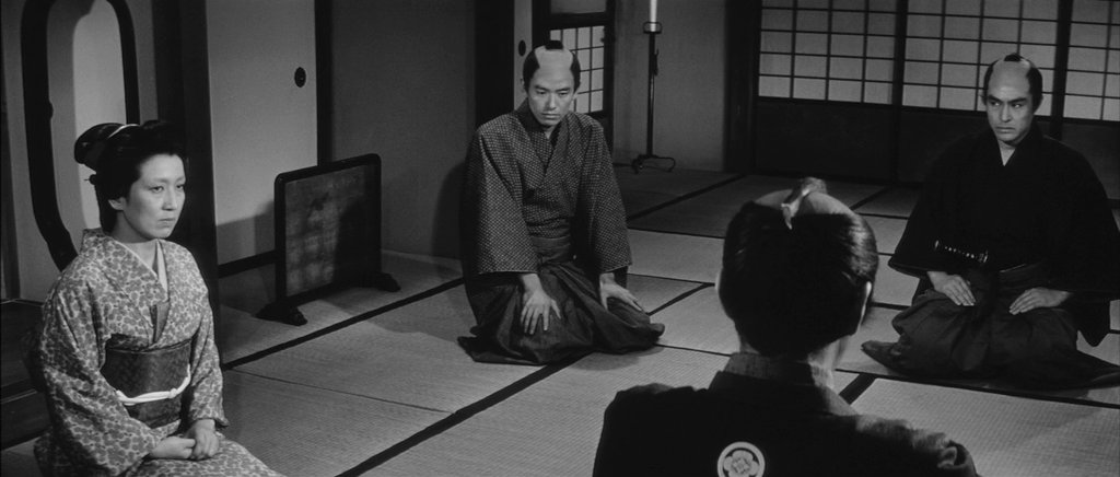 Un peu comme The Betrayal de Tokuzō Tanaka sorti l'année précédente (et découvert récemment), Rébellion s'inscrit dans une veine très classique du chanbara : plus précisément, il explore le sous-segment relatif aux systèmes de clans de samouraïs qui écrasent ses sujets et qui prônent des valeurs morales parfois aux antipodes de ce que les plus hauts dignitaires pratiquent au quotidien. Les thématiques communes parcourent régulièrement trahison et loyauté, injustice et revendication. Mais chez Masaki Kobayashi, on a droit à un produit de luxe : Toshirō Mifune donne la réplique à Tatsuya Nakadai, deux samouraïs se vouant un grand respect mutuel menacé par les ordres de la hiérarchie, Yōko Tsukasa (une actrice ayant tourné entre autres chez Kurosawa, Gosha, Ozu, Naruse, Ichikawa, Suzuki, rien que ça) incarne un personnage féminin de premier plan, vecteur d'une composante féministe avant-gardiste, et pour illustrer cette tragédie la mise en scène du cinéaste japonais déploie une rigueur formelle qui rivaliserait presque avec celle du sublime Harakiri.