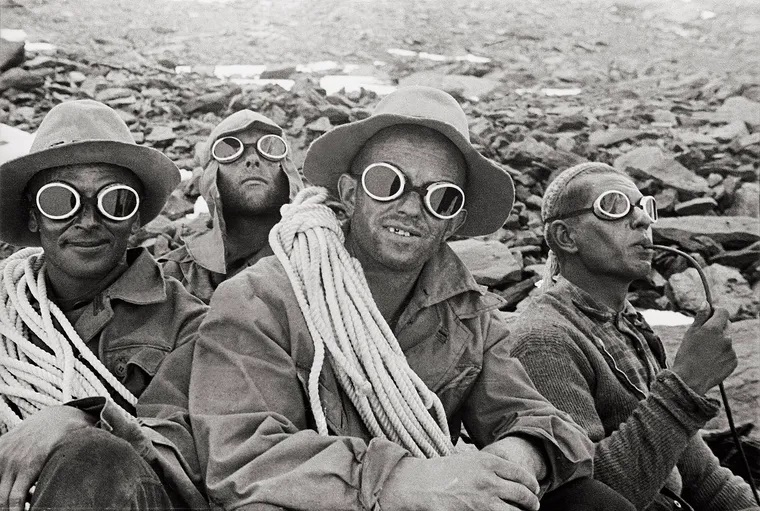 Et pourtant, les deux frères nés en 1906 et 1907 vite devenus orphelins n'ont presque rien en commun en dehors de leur passion pour les montagnes et leurs contributions pionnières. Evgueni était plutôt l'artiste bohème et charismatique, beau, beaucoup plus fort en alpinisme ; Vitali correspondait davantage à l'image de l'ingénieur austère, spécialisé en mécanique, paraissant 10 ans de plus. On comprend assez vite ce qui a poussé Gras dans cette direction (en plus de sa propre passion pour l'alpinisme), étant données l'ampleur et la tragédie toute romanesques de leurs destins respectifs. Tous deux auront subi les purges staliniennes mais de façon très différente, et on sent bien que c'est ce qui l'anime aussi, cette question, comment a-t-on pu faire arrêter de telles figures de la gloire soviétique, eux qui furent chargés de porter la supériorité socialiste jusqu'aux plus hauts sommets.