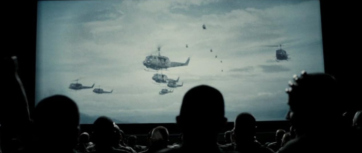 Jarhead se double ainsi d'une chronique du quotidien au cœur de ce bataillon de marines, inspiré des mémoires d'Anthony Swofford. On a droit à tous les clichés du genre, à commencer par les scènes d'amitié virile, d'humiliations, d'obéissance. Mendes cite ostensiblement les gros calibres, le Kubrick de Full Metal Jacket pour l'entraînement, Coppola pour la projection d'Apocalypse Now et Cimino pour celle de The Deer Hunter (une toute petite partie du moins, avant que la projection ne se transforme en une vidéo amateur / blague potache de mauvais goût...), montrant comment la guerre du Vietnam est mythique pour ces soldats. L'accent est mis sur l'absurdité du conflit, en mode un peu didactique, mais sans surjouer la mascarade de la mythologie militaire enfoncée chaque jour au fond du gosier. Utilisation abusive de musique (et ce indépendamment de sa qualité, Nirvana, Tom Waits, T. Rex, Bobby McFerrin), multiplication des obsessions sexuelles, tout en montrant que la guerre n'est pas celle "promise"... Un parti pris intéressant mais qui finit par tourner en rond et multiplier les personnages stéréotypés (Peter Sarsgaard, Jamie Foxx et Chris Cooper entre autres). Agréable surprise au final, malgré tout, pour un film appartenant à ce registre.