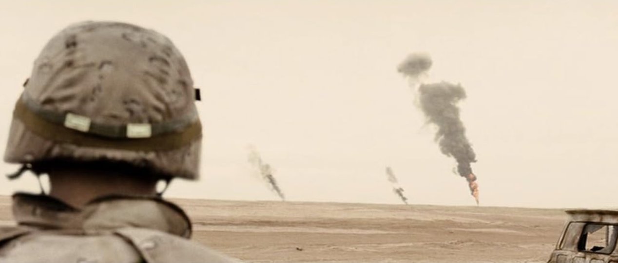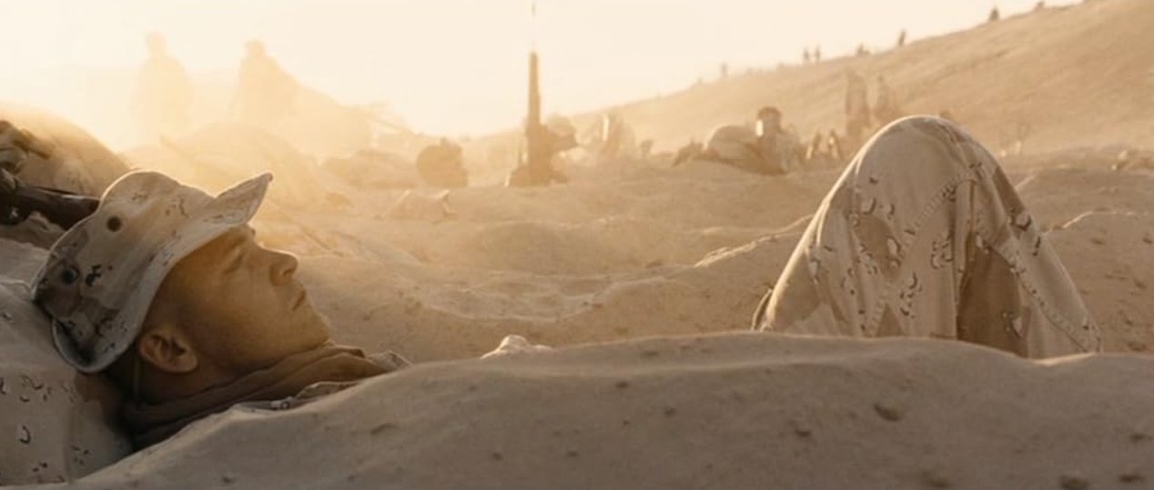 Mis à part cette séquence, Sam Mendes filme une seule chose, l'attente teintée d'ennui. Pour Jake Gyllenhaal, en bon fils et petit-fils de militaires, c'est un honneur et un devoir de servir son pays en partant dans le désert saoudien pour buter des méchants arabes. Mais le problème, c'est qu'il ne verra pas l'ombre d'un ennemi. Son groupe est gavé d'images guerrières, ils se disent prêts à passer à l'action, ils bandent les muscles, mais ils ne tireront pas une seule fois dans le cadre de leurs fonctions. Ils doivent lutter contre la soif, l'épuisement, les tensions, mais certainement pas contre les armées de Saddam Hussein ; aussi, la frustration enfle et prend des proportions immenses face à cet ennemi invisible.